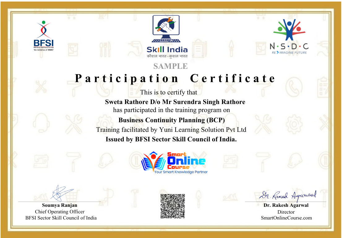 Earn dual certification from Smart Online Course and RMAI (Risk Management Association of India) & BFSI Sector Skill Council of India